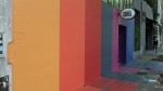 - En vegg ed glade striper.
