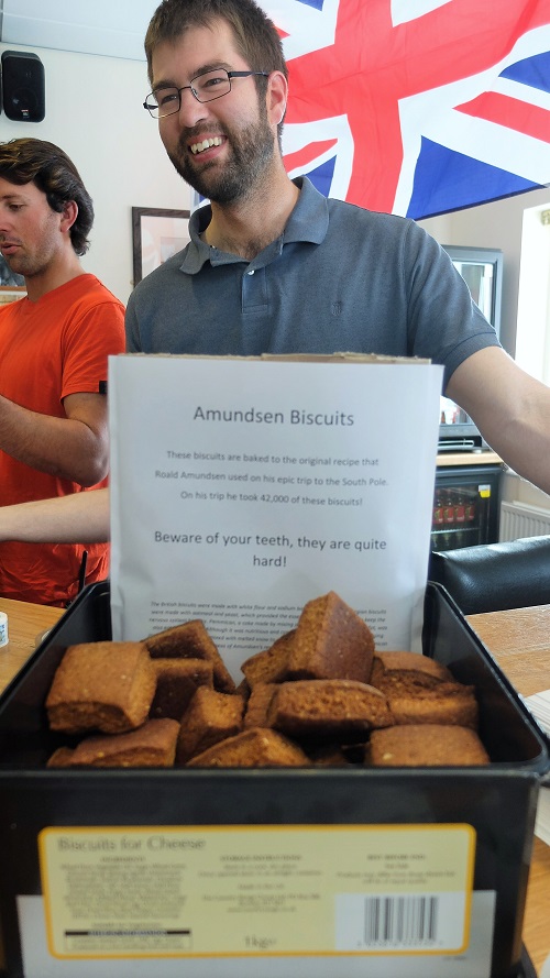 På Rothera selger de Amundsen-kjeks. Riktig ernæringsmessig sammensatt for å overleve i Antarktis, men pass på tennene.
