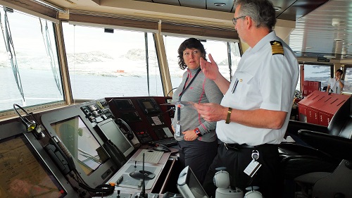 Hurtigruta MS «Fram» er spesialbygget for polare strøk. Vi har fått en eksklusiv tur på broen til kaptein Arild Hårvik. Han viser oss hvordan «Fram» er utstyrt for ekspedisjoner i ukjent farvann.