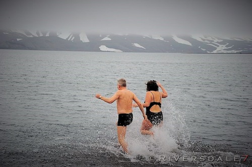 Vi er i «Syden». Lengere syn på kloden kommer vi ikke. Og er vi i «Syden», ja da bader vi. I dag på øya Deception i Antarktis badet vi på en vakker svart sandstrand, og fikk æren av å bli medlemmer av Antarktis svømmeklubb.