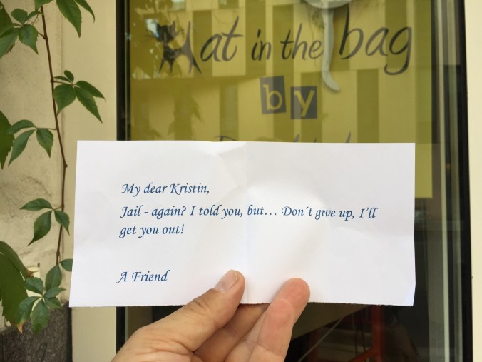 - Beskjeden vi fikk på escape-rommet «Cat in the bag» i Berlin.